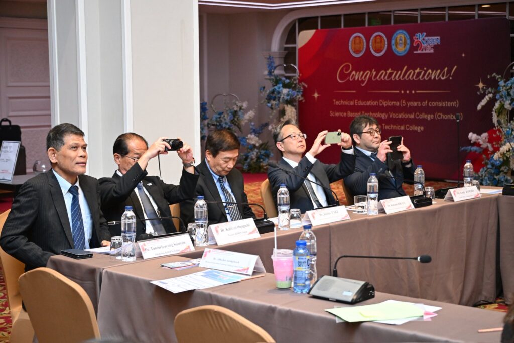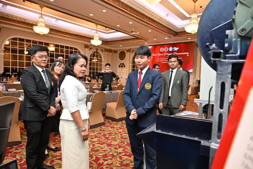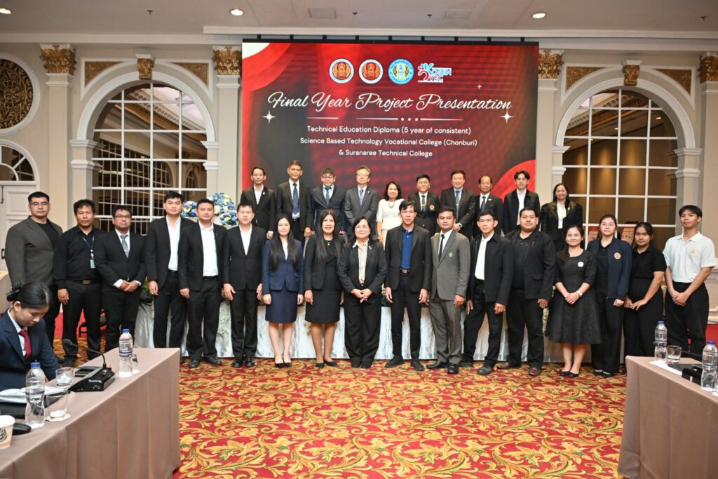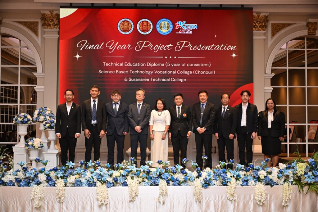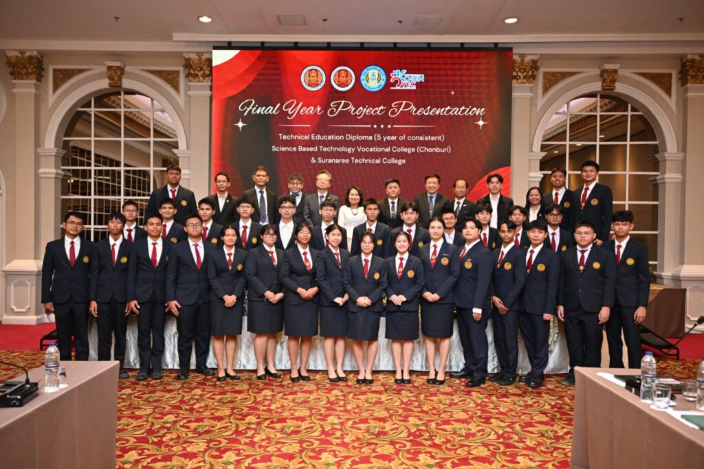 ดร. อภิชาติ อนุกูลเวช ผู้อำนวยการวิทยาลัยอาชีวศึกษาเทคโนโลยีฐานวิทยาศาสตร์ (ชลบุรี) เข้าร่วมการนำเสนอผลงานโครงการจบการศึกษา (Final Year Project) ของนักศึกษาหลักสูตรพรีเมี่ยม และนักเรียนโครงการวิทยาลัยเทคโนโลยีฐานวิทยาศาสตร์ พร้อมกล่าวรายงาน ภายในงานมีการนำเสนอผลงานนวัตกรรมของนักศึกษารวม 13 โครงการ จาก 2 สถานศึกษา โดยวิทยาลัยอาชีวศึกษาเทคโนโลยีฐานวิทยาศาสตร์ (ชลบุรี) นำเสนอ 10 นวัตกรรม