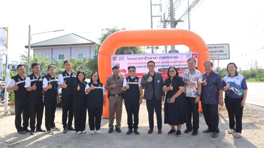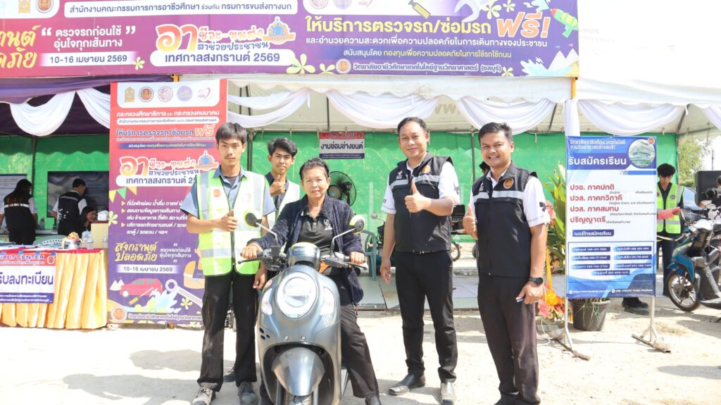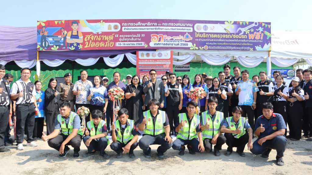 ดร. อภิชาติ อนุกูลเวช ผู้อำนวยการวิทยาลัยอาชีวศึกษาเทคโนโลยีฐานวิทยาศาสตร์ (ชลบุรี) พร้อมนางนิตยา เสาหงษ์ รองผู้อำนวยการฝ่ายวิชาการ นายปิยะพงษ์ พรหมบุตร รองผู้อำนวยการฝ่ายพัฒนากิจการนักเรียนนักศึกษา คณะครู และนักเรียน พร้อมกันเข้าร่วมพิธีเปิดจุดบริการ “อาชีวะ ขนส่ง อาสาช่วยประชาชน : เทศกาลสงกรานต์ 2569” ทางไลน์สดผ่านระบบออนไลน์ โดยรับชมถ่ายทอดสดจาก หน้าอาคารสำนักงานคณะกรรมการการอาชีวศึกษา ราชดำเนิน ซึ่งจัดโดยสำนักงานคณะกรรมการการอาชีวศึกษา