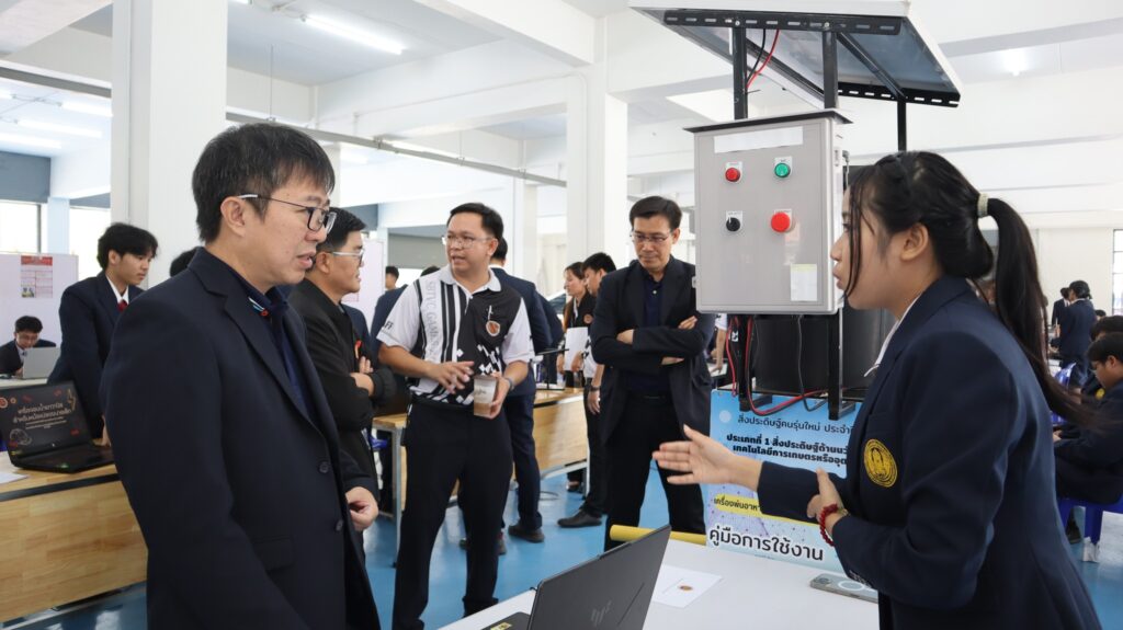 โดยมีนางนิตยา เสาหงษ์ รองผู้อำนวยการฝ่ายวิชาการ กล่าววัตถุประสงค์ในการจัดโครงการ ซึ่งอาจารย์มหาวิทยาลัยเทคโนโลยีพระจอมเกล้าพระนครเหนือ ให้เกียรติเป็นคณะกรรมการผู้ทรงคุณวุฒิ ในการนำเสนอผลงานในครั้งนี้ ในโครงการนี้นางสาวรุจิรัตน์ เอมเปีย รองผู้อำนวยการฝ่ายแผนงานและความร่วมมือ และคณะครู นักเรียนชั้น ปวช.1-3 ทุกแผนกวิชาหลักสูตรโครงการฐานวิทยาศาสตร์ เข้าร่วมนำเสนอผลงานโครงงานของนักเรียน พร้อมชิ้นงาน ณ ตึกเมคคาทรอนิกส์ชั้น 1