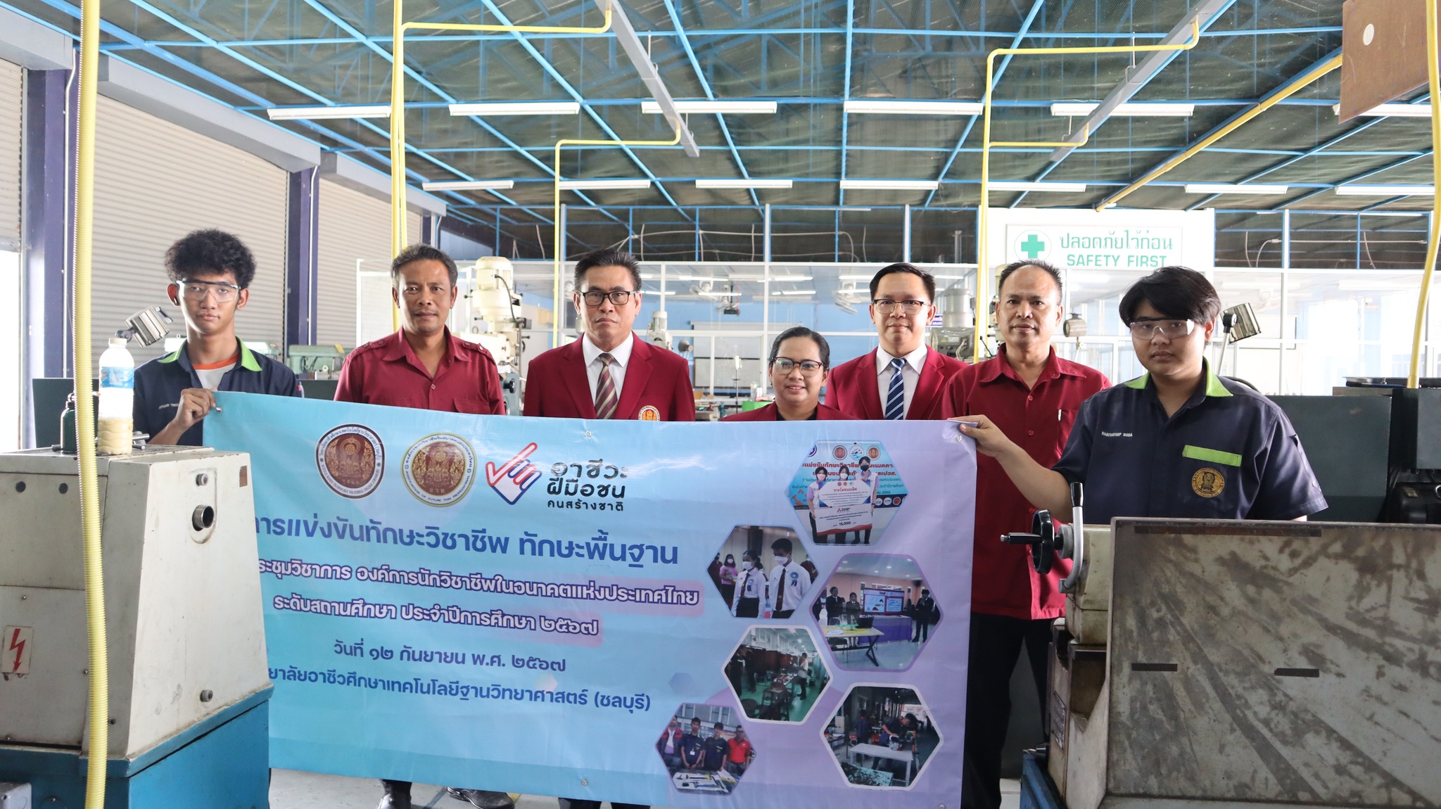 ดร.พีรพงษ์ พันธ์โสดา ผู้อำนวยการวิทยาลัยอาชีวศึกษาเทคโนโลยีฐานวิทยาศาสตร์ (ชลบุรี) มอบหมายให้นางนิตยา เสาหงษ์ รองผู้อำนวยการฝ่ายวิชาการ นายเกียรติศักดิ์ สุทธิปัญโญ รองผู้อำนวยการฝ่ายพัฒนากิจการนักเรียน นักศึกษา เข้าร่วมโครงการการแข่งขันทักษะวิชาชีพ ทักษะพื้นฐาน ระดับสถานศึกษา ปีการศึกษา 2567 ณ วิทยาลัยอาชีวศึกษาเทคโนโลยีฐานวิทยาศาสตร์(ชลบุรี)